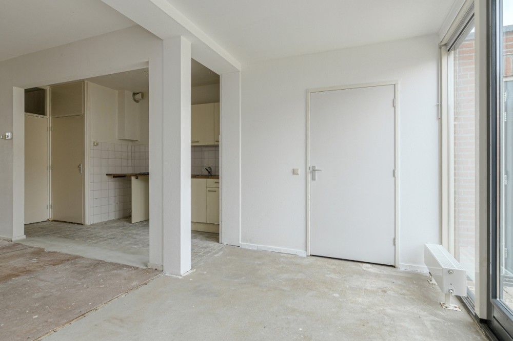 De woonkamer geeft aan de achterzijde toegang tot de openkeuken.