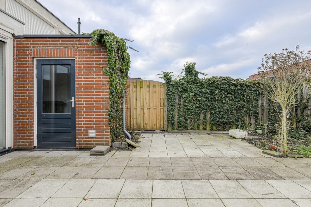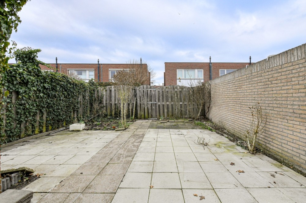 Diepe onderhoudsvriendelijk aangelegde achtertuin welke is gelegen op het noord/ westen. De achtertuin beschikt over een (inpandig te bereiken) berging welke is voorzien van elektra en hier bevindt zich de opstelplaats van de cv-ketel.