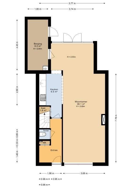 Entree/hal met meterkast, toiletruimte en trapopgang welke toegang geeft tot de eerste verdieping.