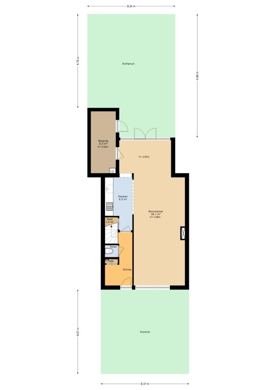 - Ruime woning met achtertuin v.v. uitgebouwde woonkamer, inpandig te bereiken berging en 4 slaapkamers;