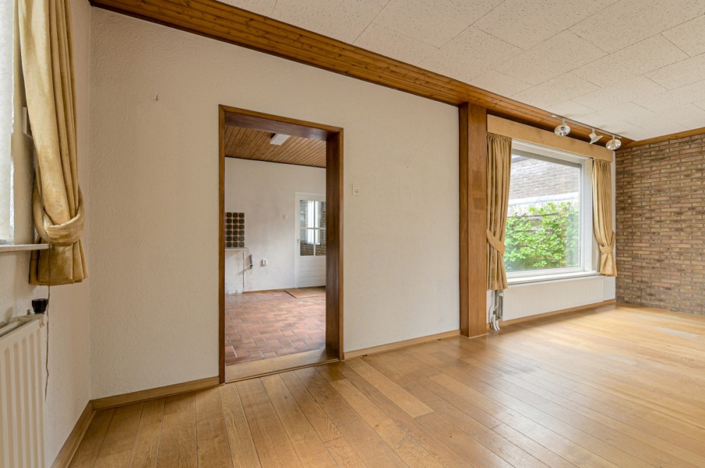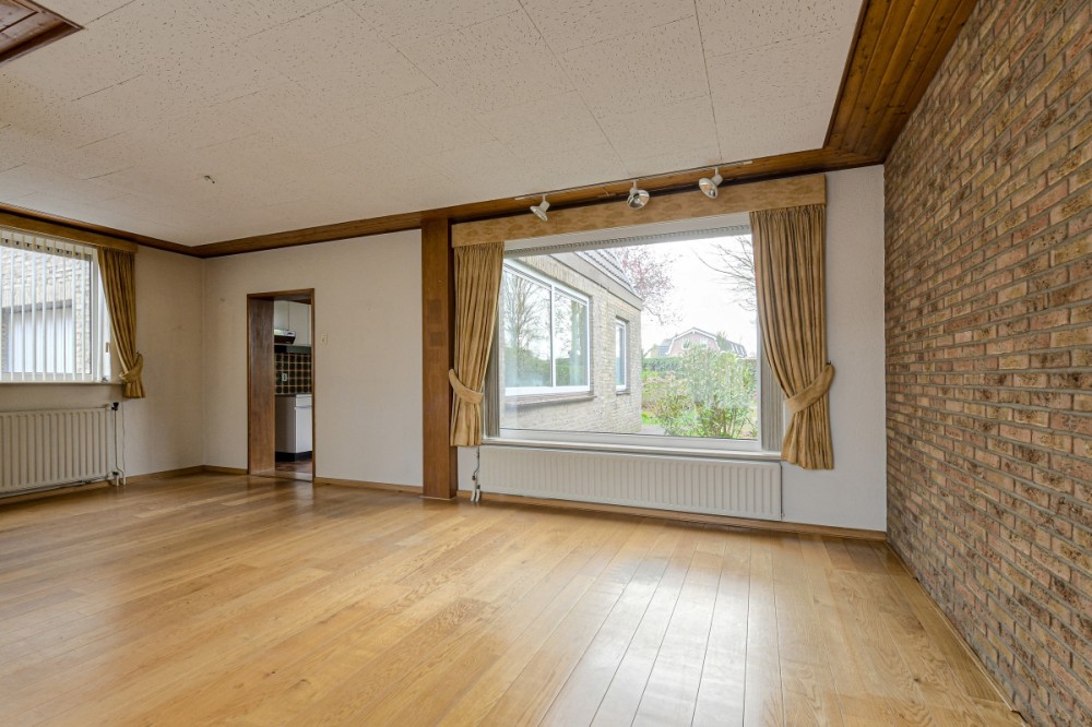 L-Woonkamer, afm. ca. 32m², met houten vloer en veel lichtinval door de vele raampartijen.