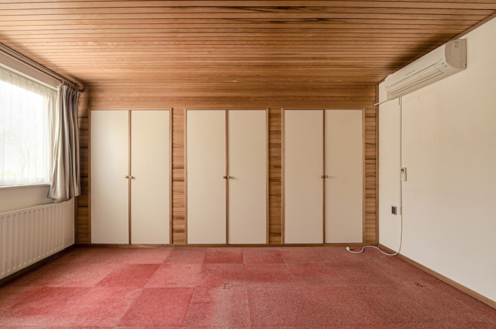 Ouderslaapkamer boven de garage, afm. ca. 14,1m², met airco en 3 vaste kasten.