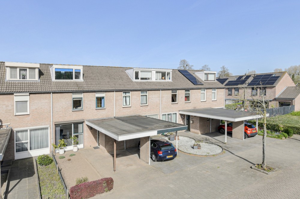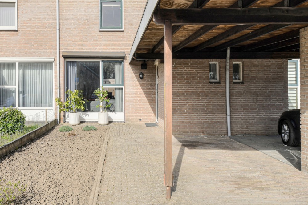 In de "Schildersbuurt", zijnde Dommelbergen-Noord, gelegen leuke uitgebouwde tussenwoning met carport aan de voorzijde van het pand, omsloten tuin met stenen berging en achterom.
