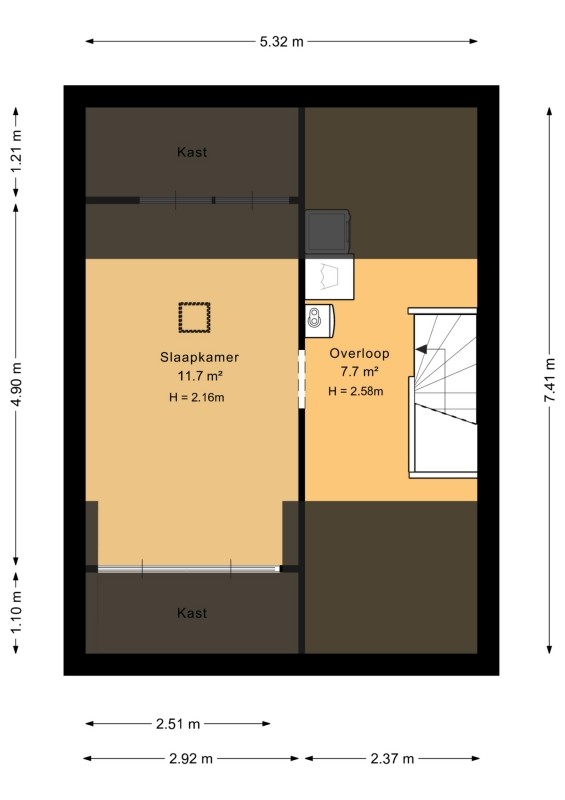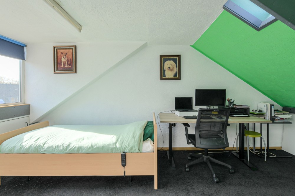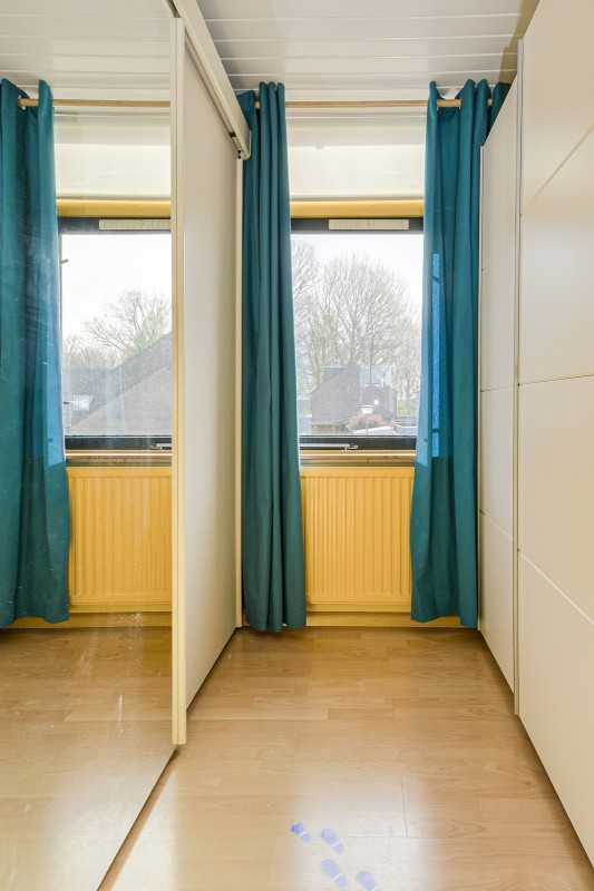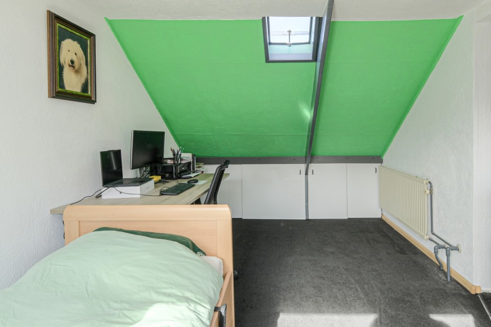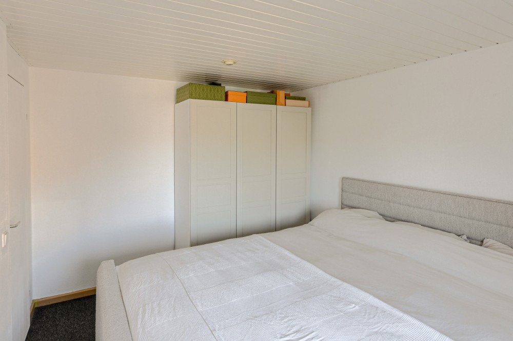 Middels vaste trap toegang tot de voorzolder. Op de voorzolder treft u de combiketel (Remeha) aan alsmede een dakvenster. Volwaardige slaapkamer met kunststof dakkapel, granolwanden en bergruimte onder de schuine zijde van het dak.