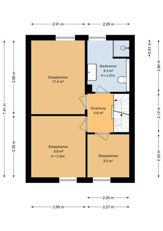 Overloop met toegang tot 3 slaapkamers alsmede tot de badkamer. Alle slaapkamers voorzien van een laminaatvloer.
