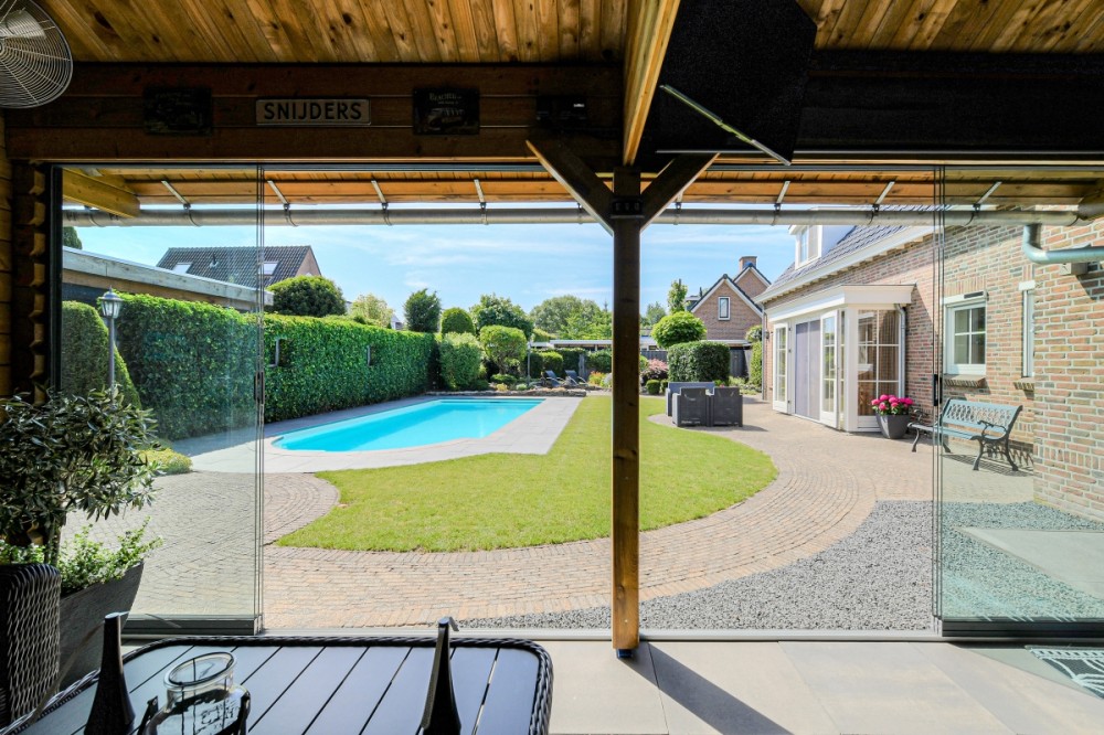 - Privacy volle tuin op het oosten gelegen met zwembad en royale luxe afsluitbare veranda en berging.