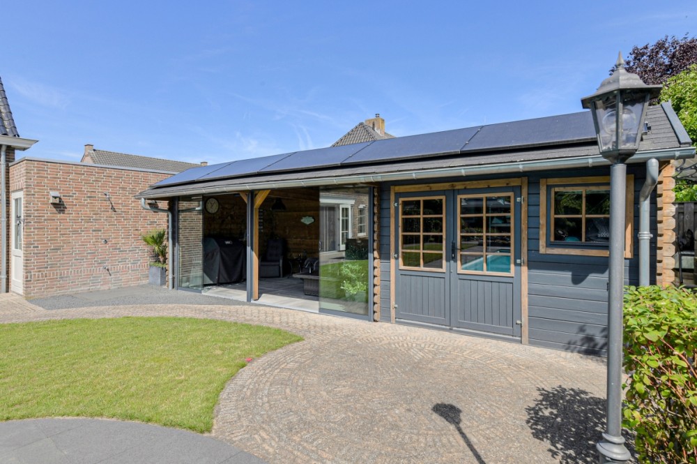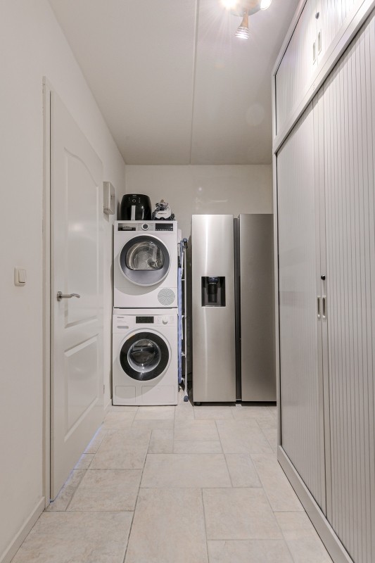 Inpandig te bereiken bijkeuken met opstelplaats was apparatuur en voorts riante dubbele garage van 36m² welke is voorzien van een dubbele elektrisch bedienbare garagedeur, technische ruimte zwembad en loopdeur welke toegang geeft tot de tuin. Tevens is er een laadpunt voor de elektrische auto aanwezig.