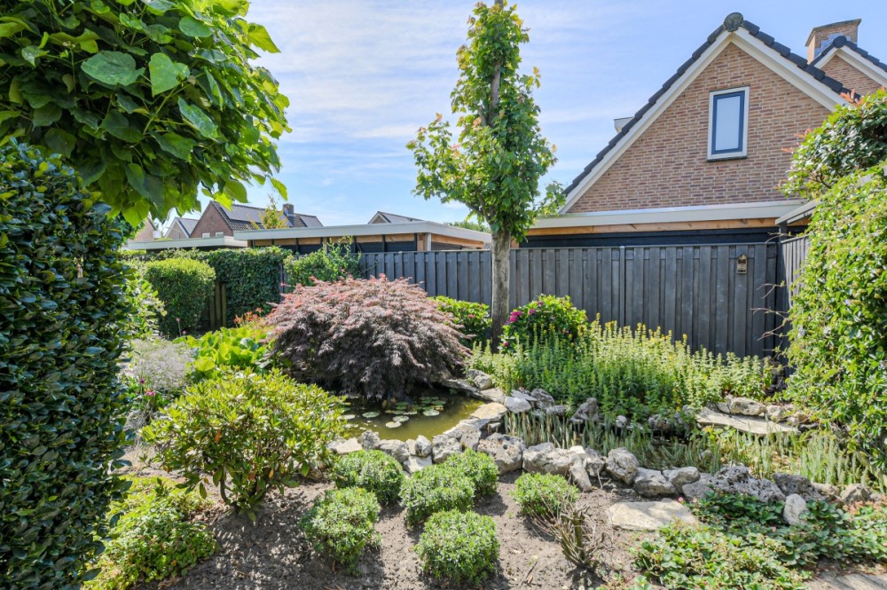 De tuin is een waar paradijs voor liefhebbers van buitenleven. Volledig aangelegd met beregening installatie en perfect onderhouden, met een luxe overkapping welke is voorzien van glazen schuifwanden, opbergruimte, tegelvloer en houten balkenplafond.