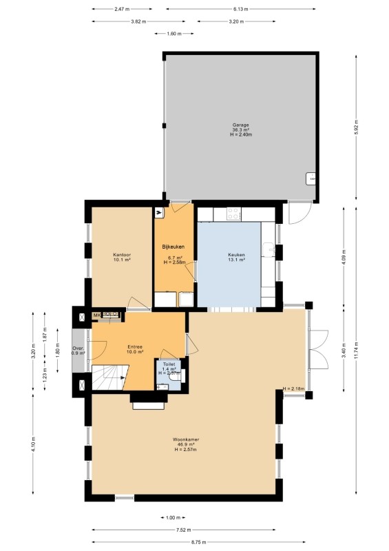 Vanuit de entree/hal is de kantoorkamer bereikbaar, gelegen aan de voorzijde van de woning. Ook uitermate geschikt als hobby-/speelkamer.