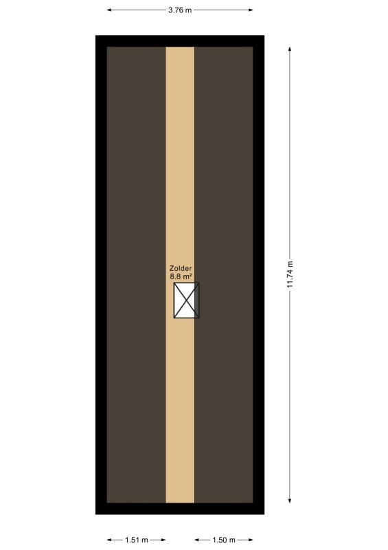 Via een vlizotrap te bereiken zolderruimte met een nok hoogte van 180cm over de gehele breedte van de woning.