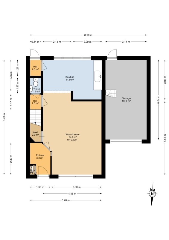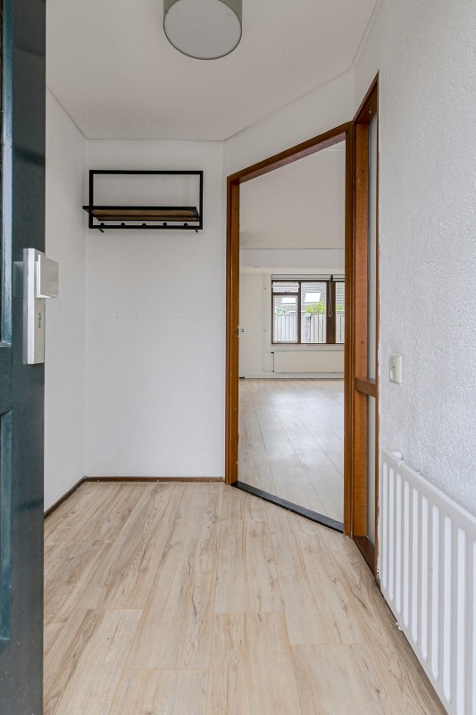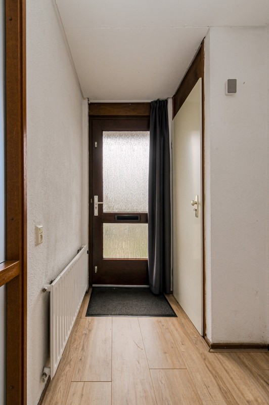 De entree/hal met meterkast en garderobenis geeft toegang tot de woonkamer.