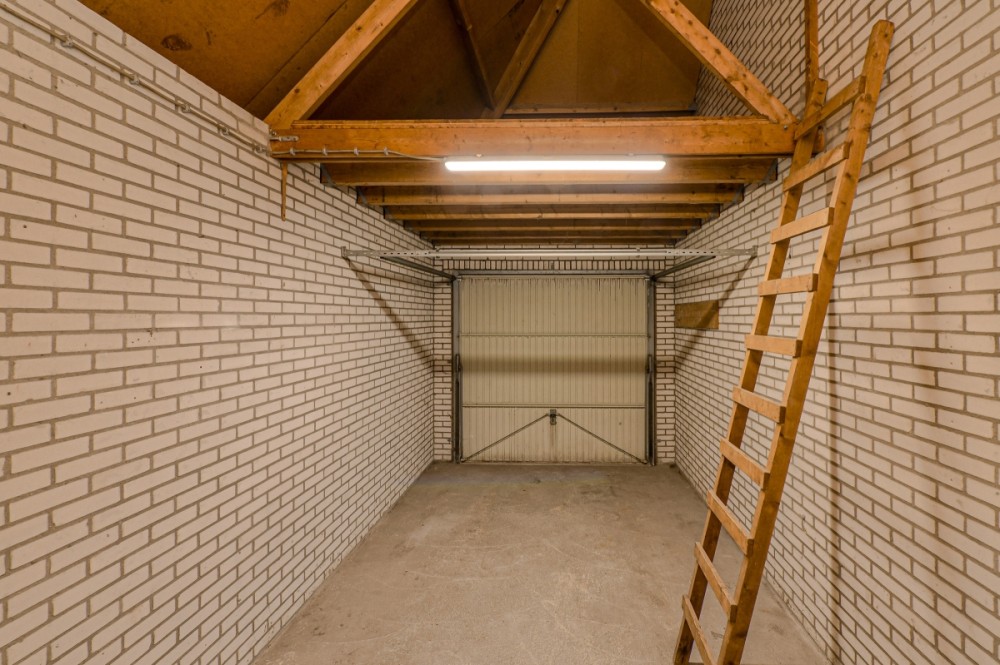 De garage, welke is gelegen naast de woning, is voorzien van een bergzolder en kanteldeur alsmede loopdeur naar de tuin. Voorts treft u hier elektriciteit aan. Voor de garage is een oprit aanwezig.