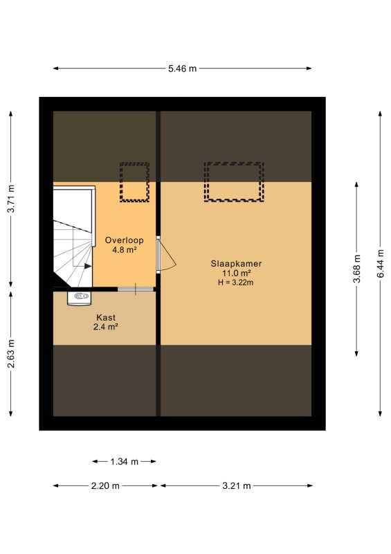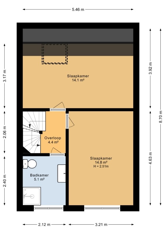 Slaapkamer voorzijde afmeting circa 4.61 x 3.17 m.