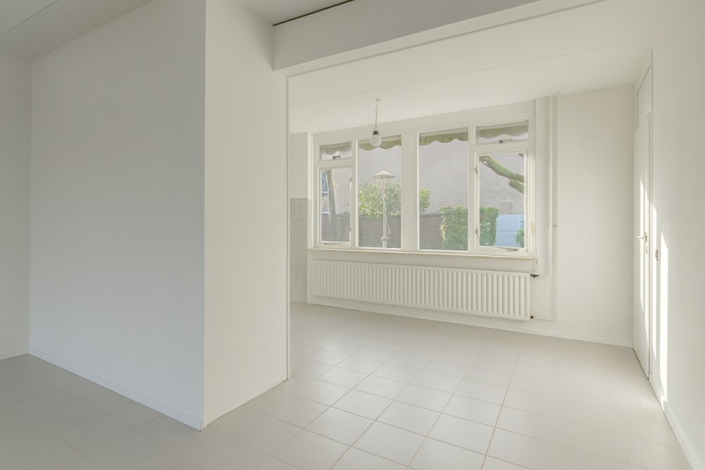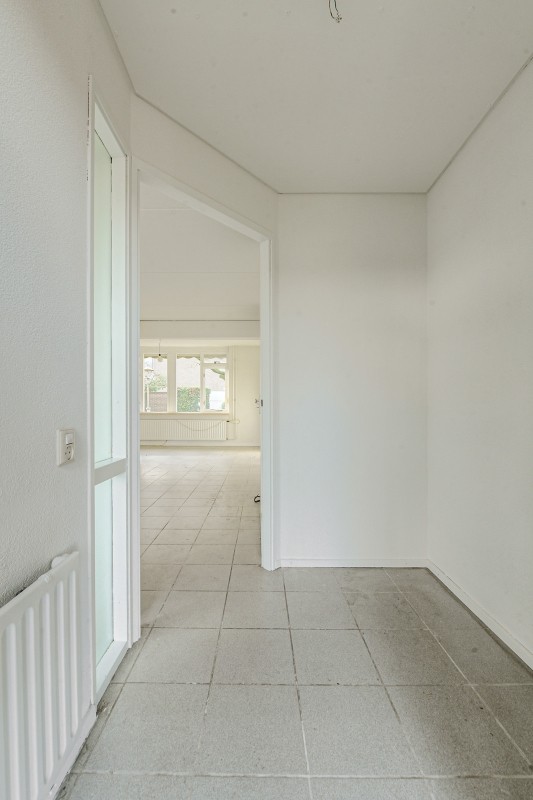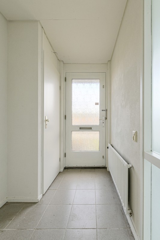 Vanuit de keuken is middels een tussenhalletje de achtertuin te bereiken.