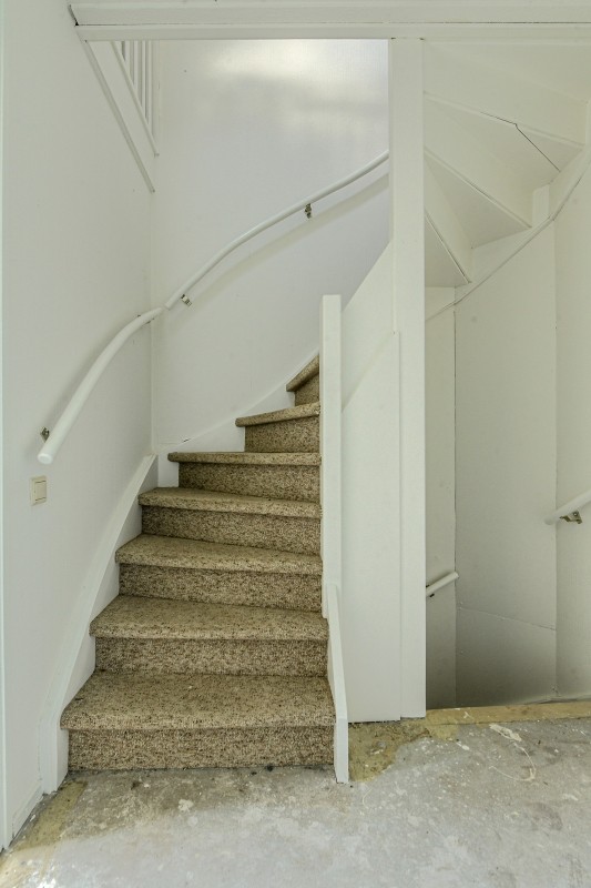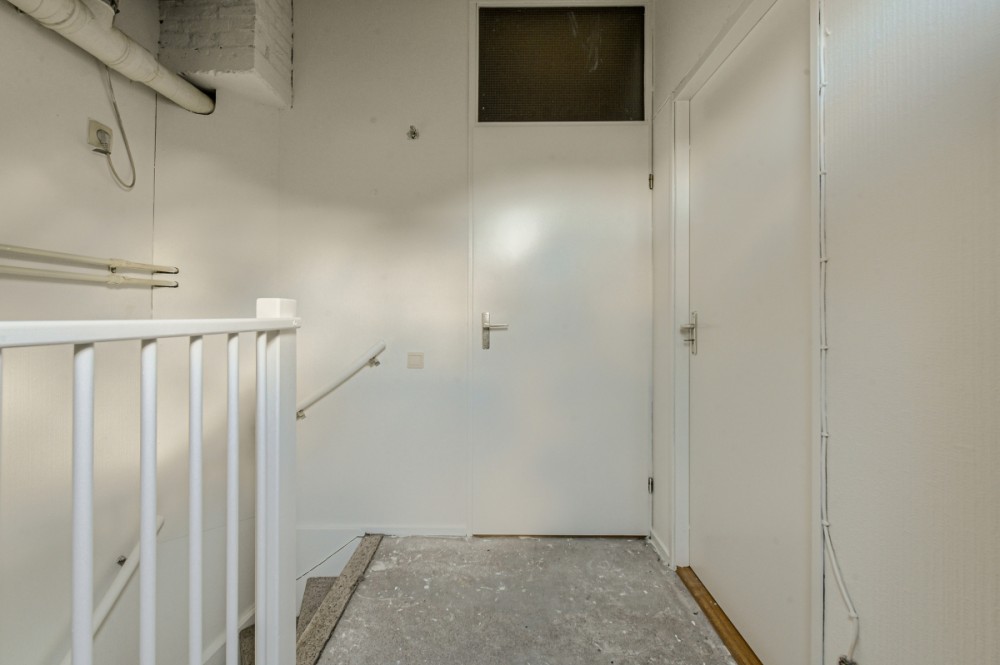 Overloop welke toegang geeft tot de twee slaapkamers, alsmede de badkamer en vaste trapopgang naar de tweede verdieping.