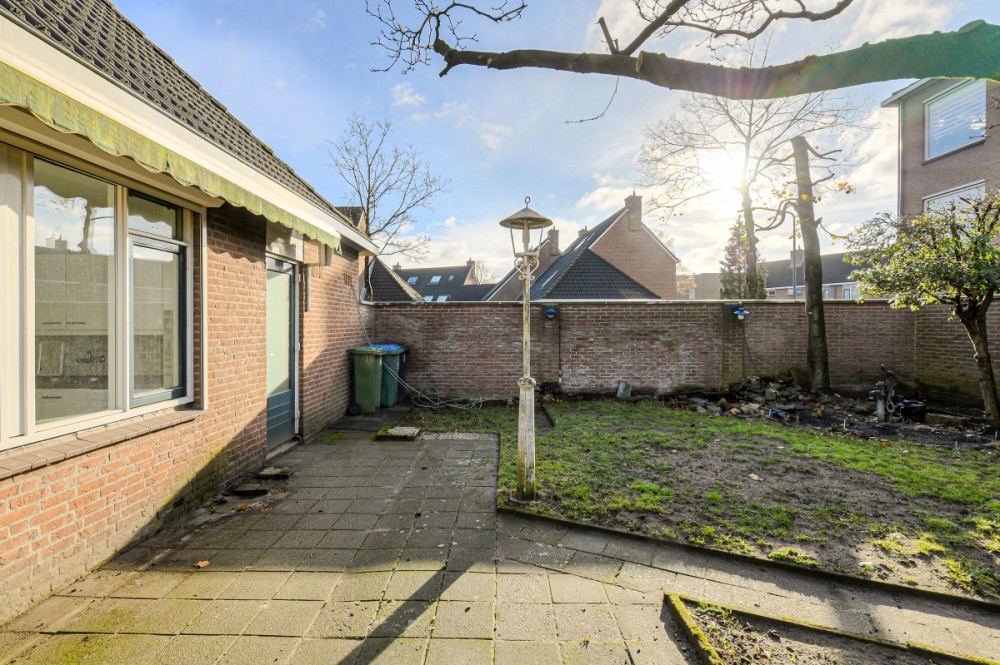 Midden in het centrum van Oosterhout, doch rustig gelegen, royale hoekwoning met garage/berging met bergzolder, geweldige tuin op het westen gelegen met achterom.