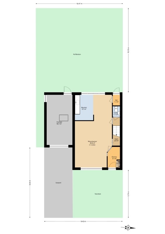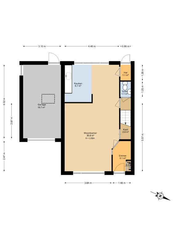 De entree/hal met meterkast en garderobenis geeft toegang tot de woonkamer.