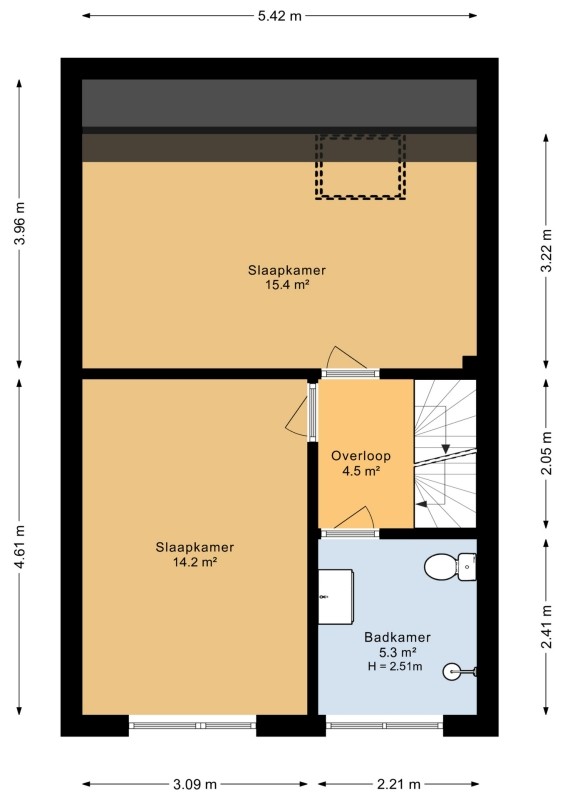 Slaapkamer voorzijde afmeting circa 4.61 x 3.17 m.