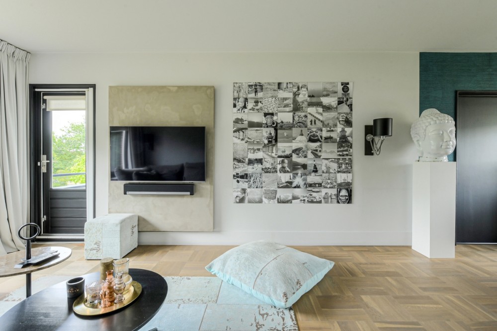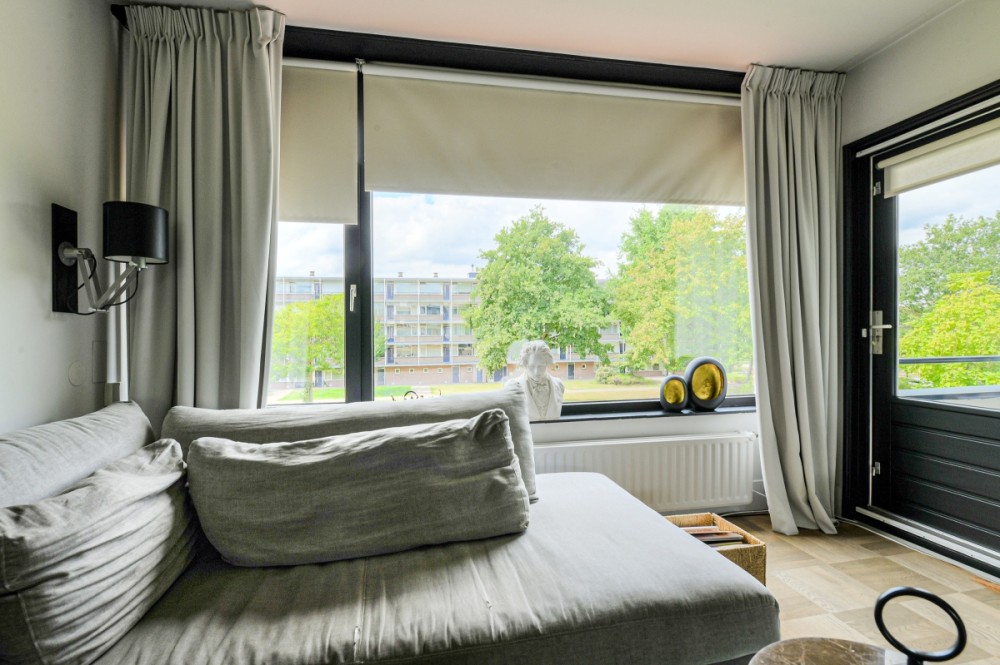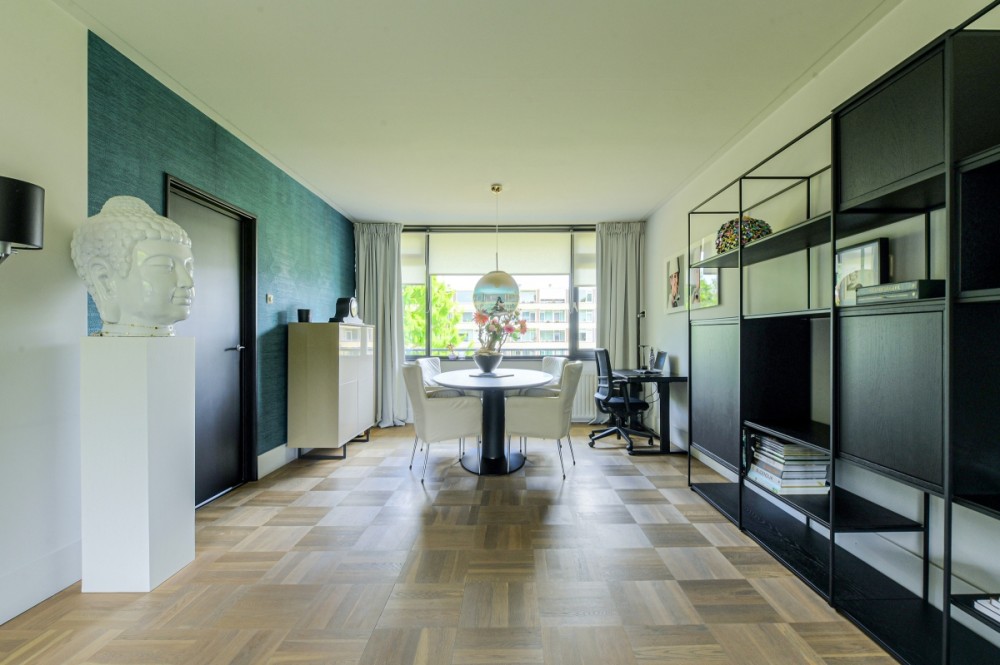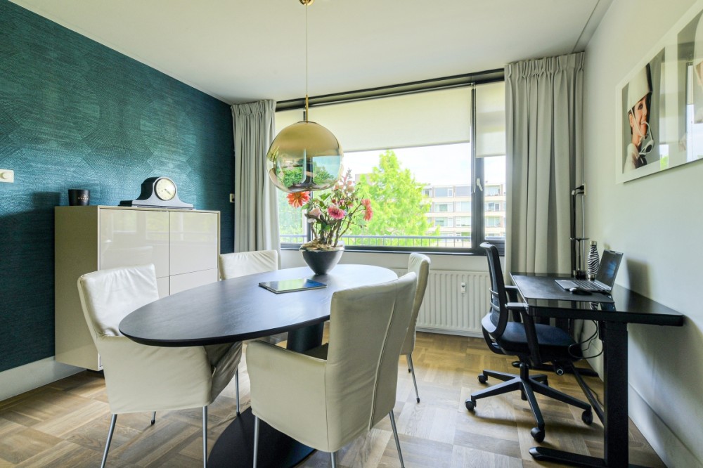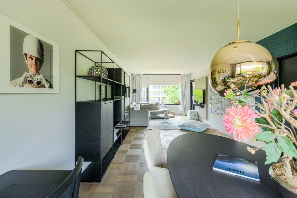 -Riante woon/eetkamer door de samenvoeging van de oorspronkelijke woonkamer met een slaapkamer;