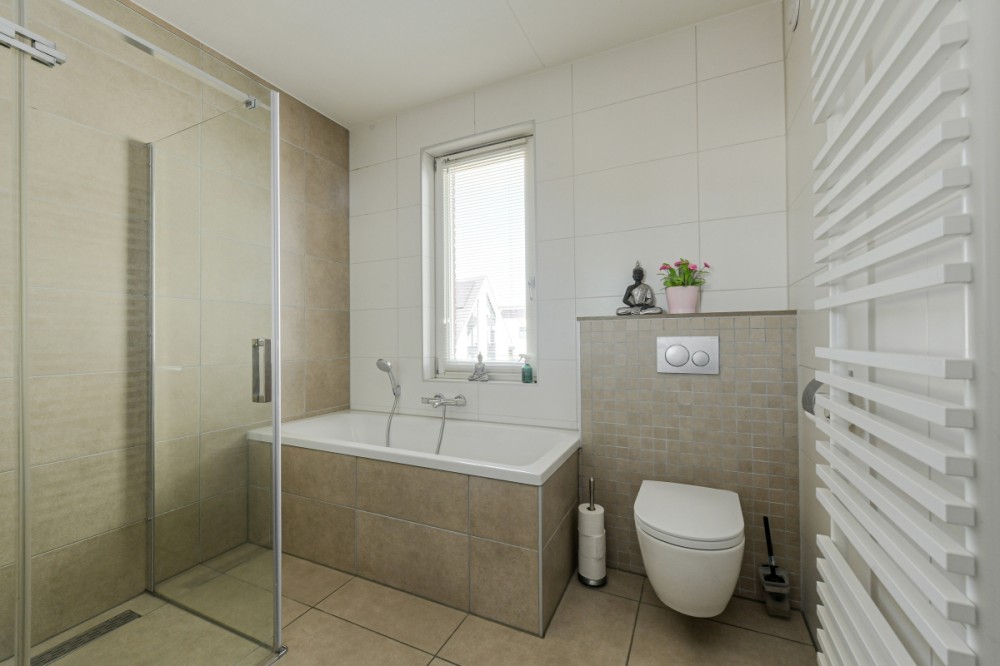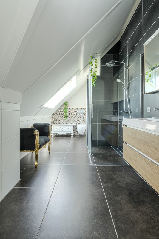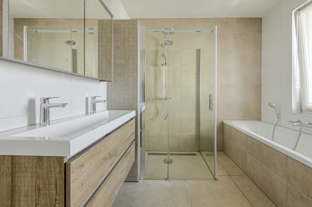 De 2e badkamer is voorzien van een inloopdouche, wastafelmeubel en derde hangcloset.