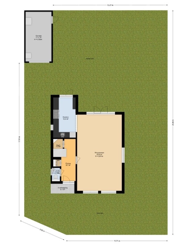 De garage/berging is voorzien van een sectionaal deur. De royale oprit geeft ruimte aan twee auto's.