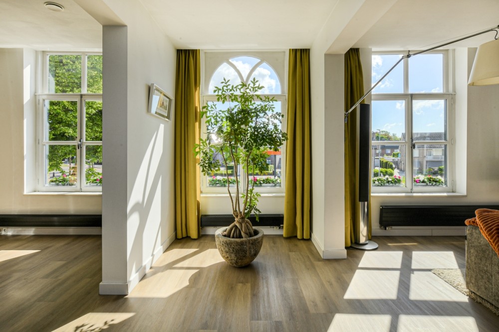 -Riant wonen op de 1e en 2e verdieping met veel lichtinval door de vele raampartijen.