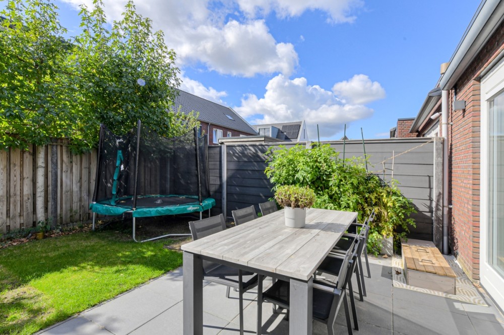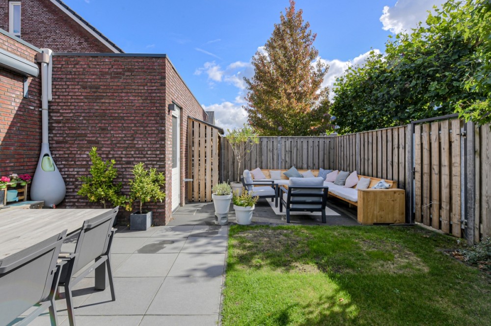 De woning beschikt over een eigen oprit waar u twee auto's kunt parkeren. De garage/berging heeft een afmeting van circa 18 m2 en is voorzien van een elektrische roldeur. De tuin is met name in de breedte achter het pand en de garage gelegen en ligt gunstig ten opzichte van de zon aangezien deze op het zuiden is gesitueerd. Heerlijk terras aanwezig om van de zon te genieten.