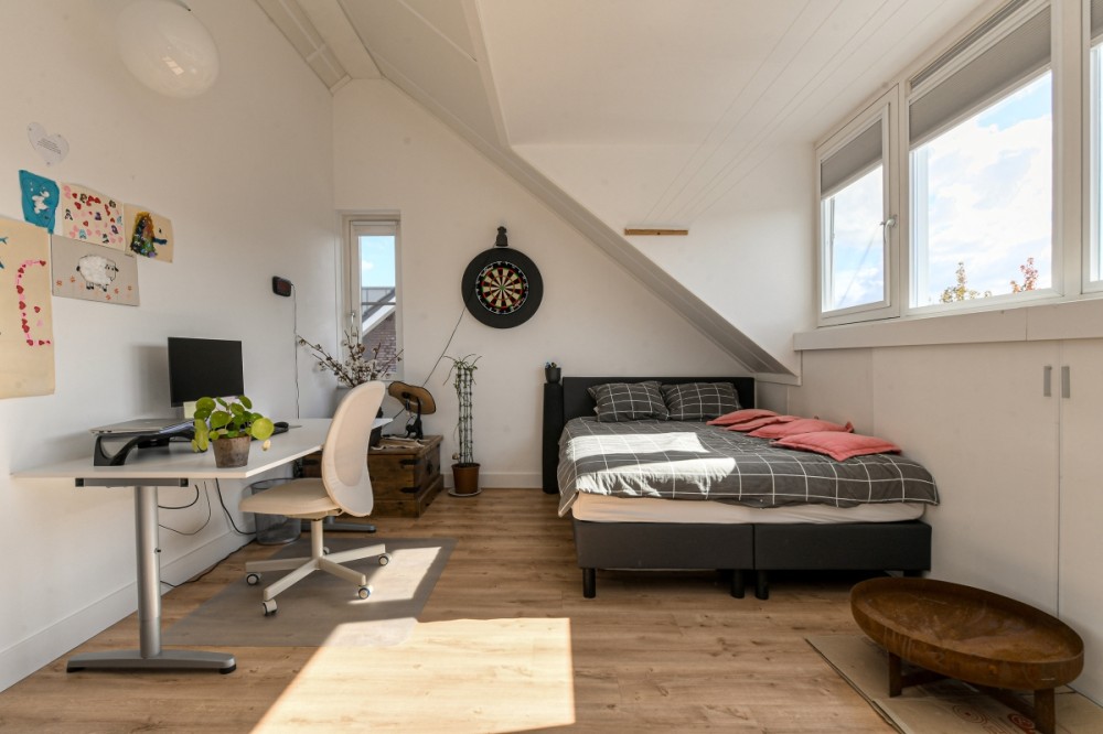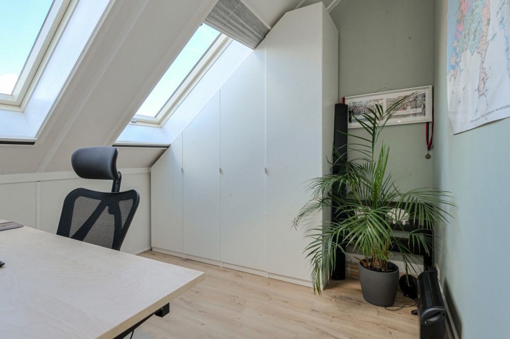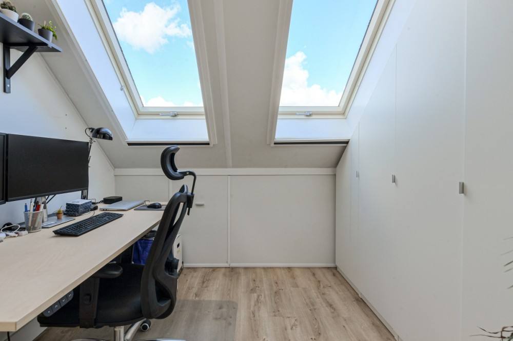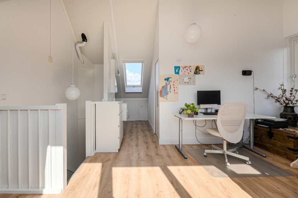 Middels de vaste trap is de royale geïsoleerde gedeeltelijk open zolderruimte bereikbaar. Aan de voorzijde op de zolder is een werkkamer gecreëerd, met een afmeting van circa 6 m2, welke voorzien is van een hoogwaardige PVC vloer en 2 tuimelramen.