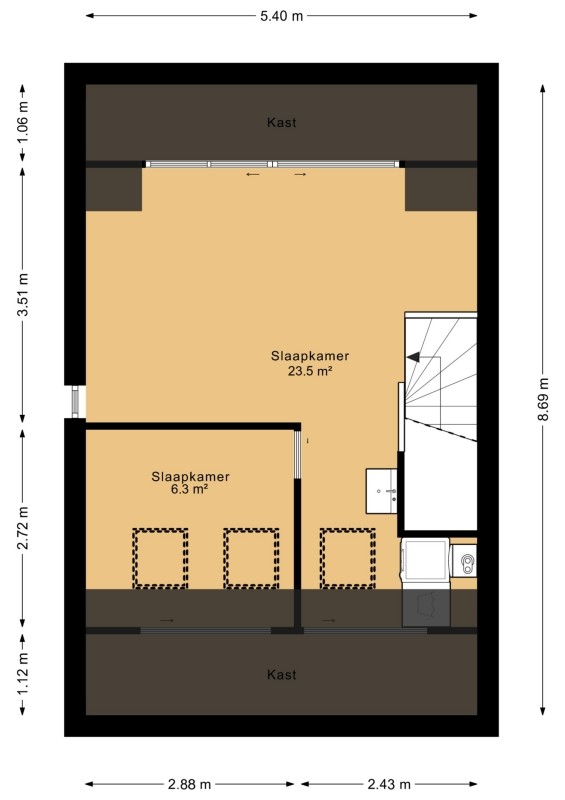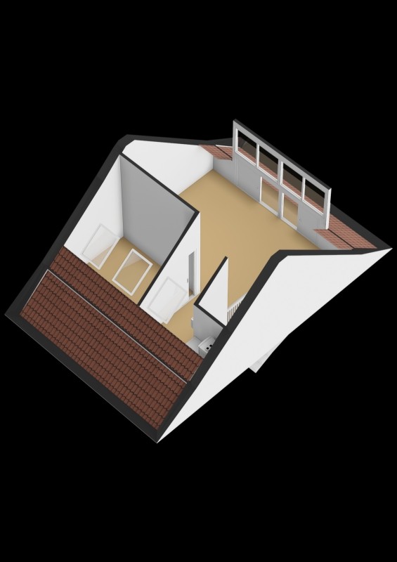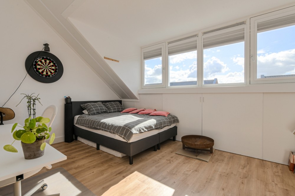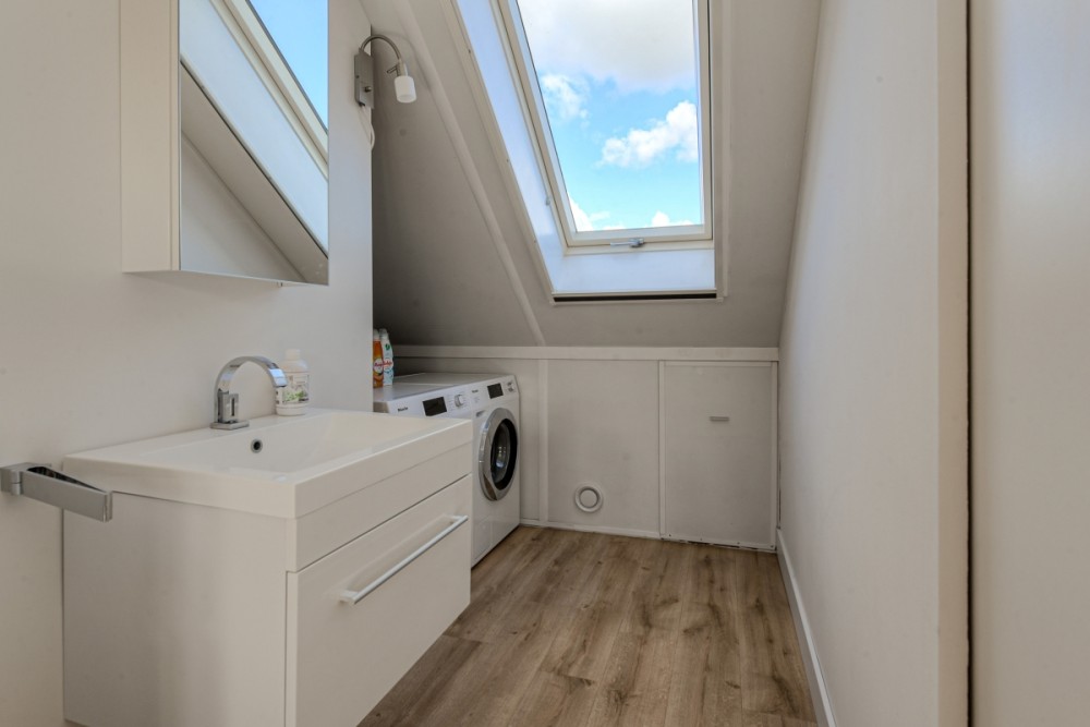 Op het zoldergedeelte is aan de achterzijde een dakkapel geplaatst met extra bergruimte achter de knieschotten. Deze ruimte is eveneens voorzien van een hoogwaardige PVC vloer en thans in gebruik als slaapkamer van circa 23,5 m2. Deze ruimte is eenvoudig af te schermen. Voorts is op de voorzolder een tuimelraam, de opstelplaats van de c.v.-combiketel ( Intergas HR, 2013), de omvormer voor de zonnepanelen, mechanische ventilatie en aansluitingen wasmachine en droger aanwezig.