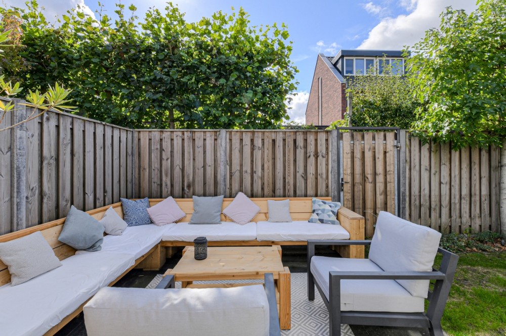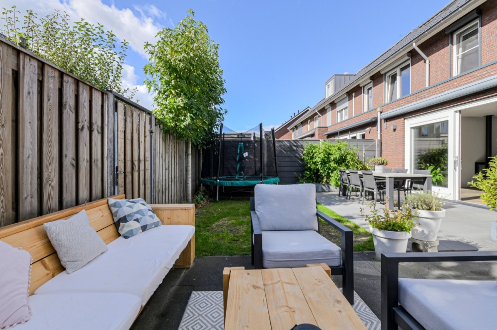 De woning is aan de voorzijde vrij gelegen met uitzicht over een groenstrook. Heerlijke zonnige tuin op het zuiden met diverse borders met beplanting, royaal terras en achterom.