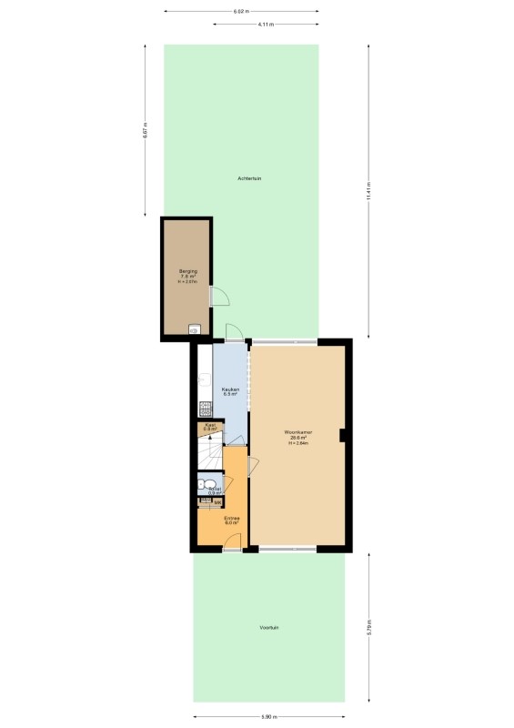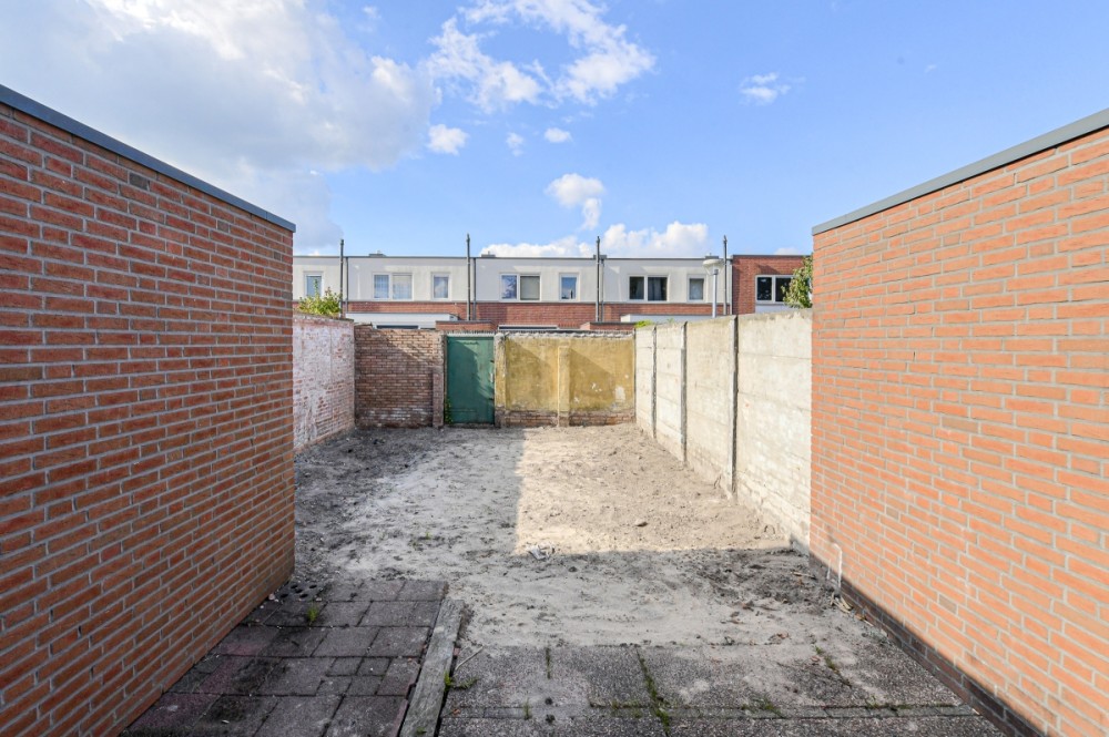 Diepe nog aan te leggen achtertuin welke is gelegen op het noord/ westen. De achtertuin beschikt over een berging welke is voorzien van elektra en hier bevindt zich de opstelplaats van de cv-ketel.