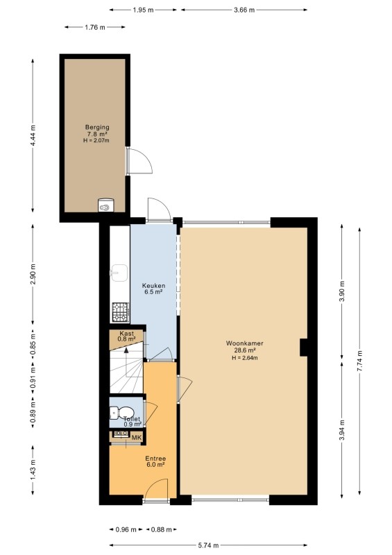-Perceeloppervlak dient nog ingemeten te worden door kadaster. Oppervlakte van ca 150m²