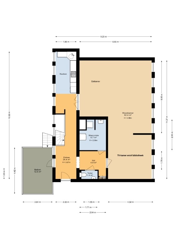 De hoofdentree is te bereiken middels een trap en een rolstoelbrug. Stijlvolle entree met belplateau en toegang tot de centrale hal. In de centrale hal treft u de trapopgang naar de bovenliggende appartementen en een lift welke tevens toegang biedt tot de onderverdieping van het appartement. De entree van het appartement ligt echter gelijk aan deze hal.