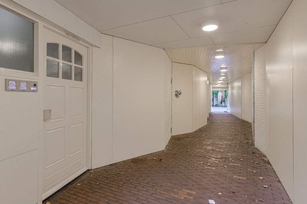 Hoofdentree aan de zijkant. Centrale hal met trapopgang, liftinstallatie en brievenbussen. Met de lift of via het trappenhuis is dit bijzonder nette appartement te bereiken.