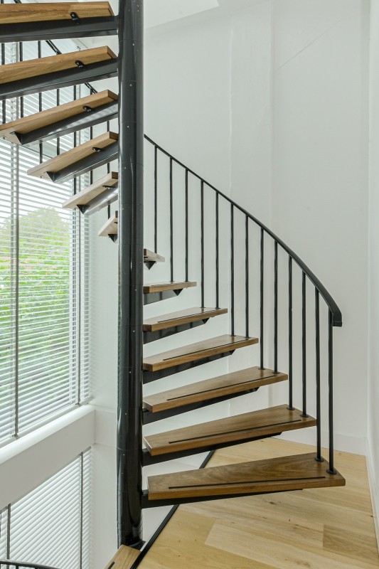 Overloop welke toegang geeft tot de 3 slaapkamers, de badkamer en tot de vaste wenteltrap welke toegang geeft tot de tweede verdieping. De verdieping is vrijwel geheel voorzien van een laminaatvloer.