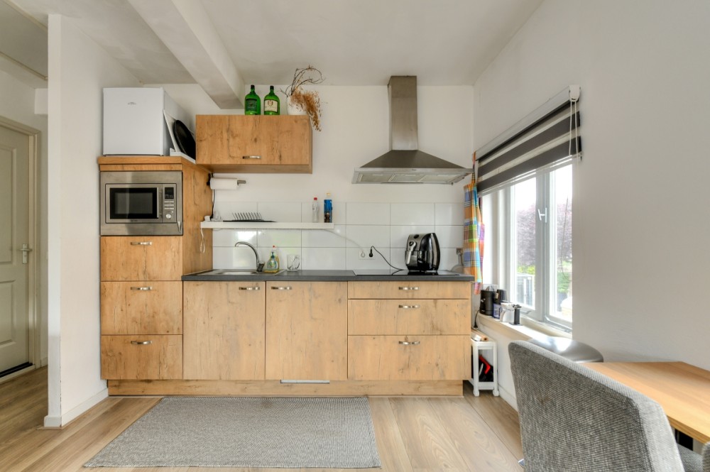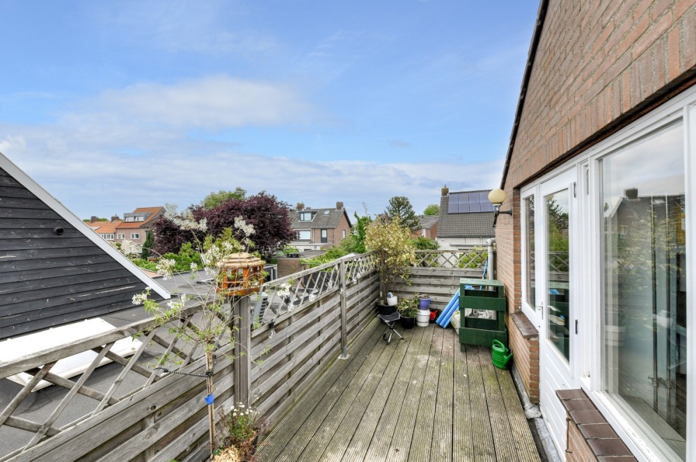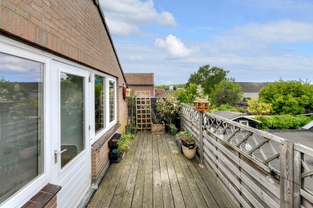 Aan de achterzijde van het appartement ligt een dakterras van circa 8 m² gelegen ten noorden, een fijne plek om te ontspannen met vrij uitzicht over de omgeving.