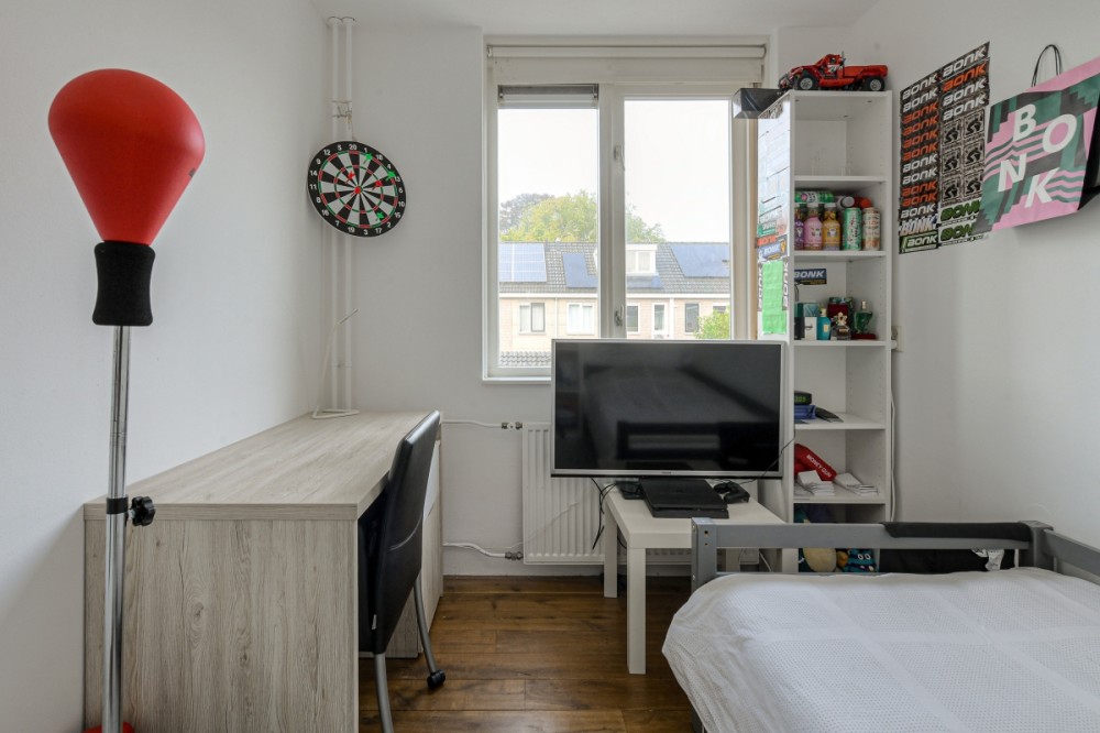 Achterslaapkamer afm. ca. 11.8 m² met eiken toplaag houtenvloer.