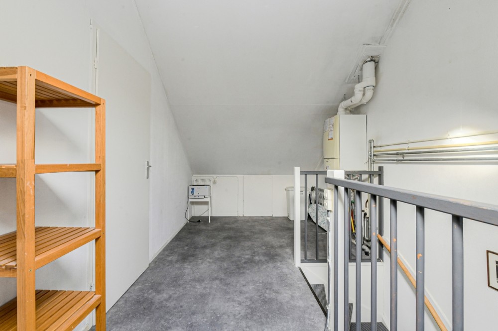 Middels vaste trap te bereiken voorzolder alwaar de CV-combiketel en de aan- en afvoer t.b.v. de was apparatuur zijn gesitueerd.