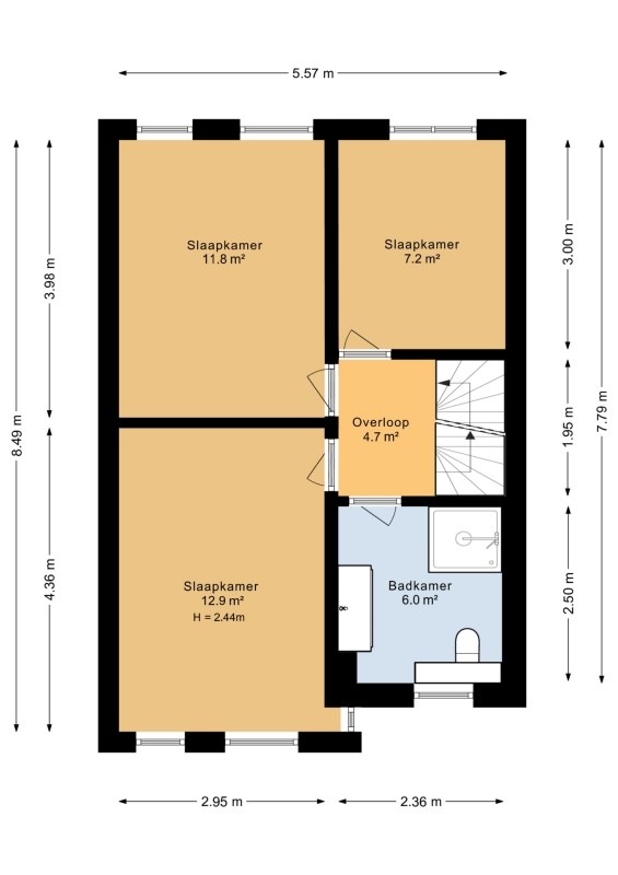 Vanaf de overloop zijn bereikbaar de 3 slaapkamers, de badkamer alsmede de vaste trapopgang naar de tweede verdieping. De verdiepingsvloer is eveneens voorzien van een eiken toplaag houtenvloer.