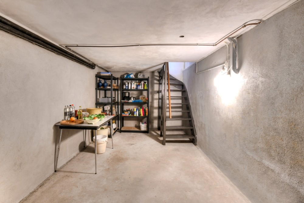 Grenzend aan de keuken is de bijkeuken gelegen. Hier is de aansluiting ten behoeve van de wasapparatuur aanwezig, alsmede via trap toegang tot de kelder/provisiekelder op stahoogte. De bijkeuken biedt toegang tot het terras met veranda en de achtertuin.