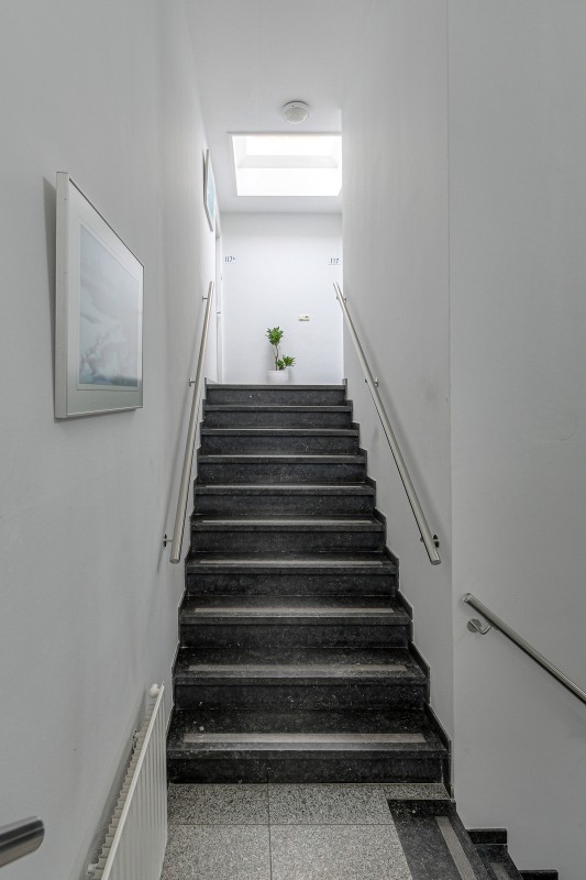 De hoofdingang is voorzien van een gesloten entree met intercom, brievenbussen en natuurstenen trapopgang naar de woningen. Hier treft u ook de meterkast aan.