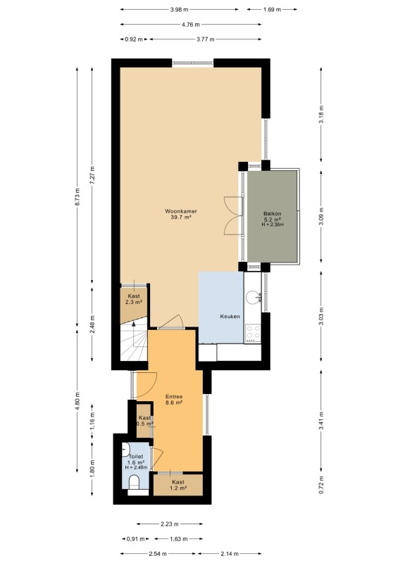 - Twee Bergingen, eerste op de begane grond, tweede op de 2e verdieping;