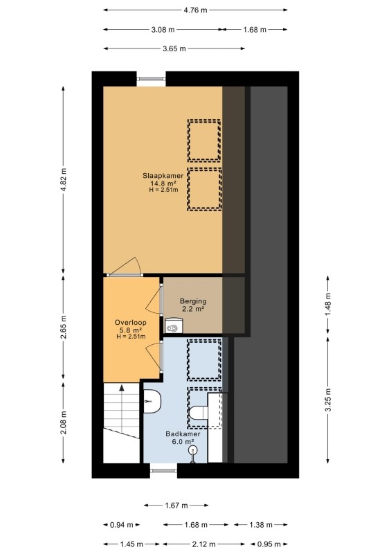 Overloop welke toegang geeft tot de slaapkamer, badkamer en bergkast.