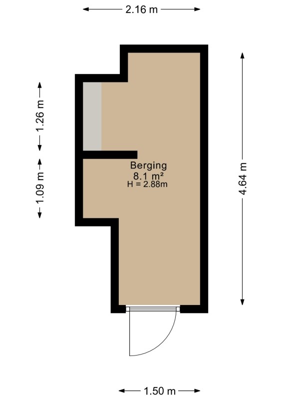Naast de voordeur heeft u toegang tot de eigen berging van circa 8 m2 voorzien van elektriciteit