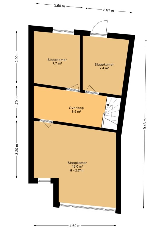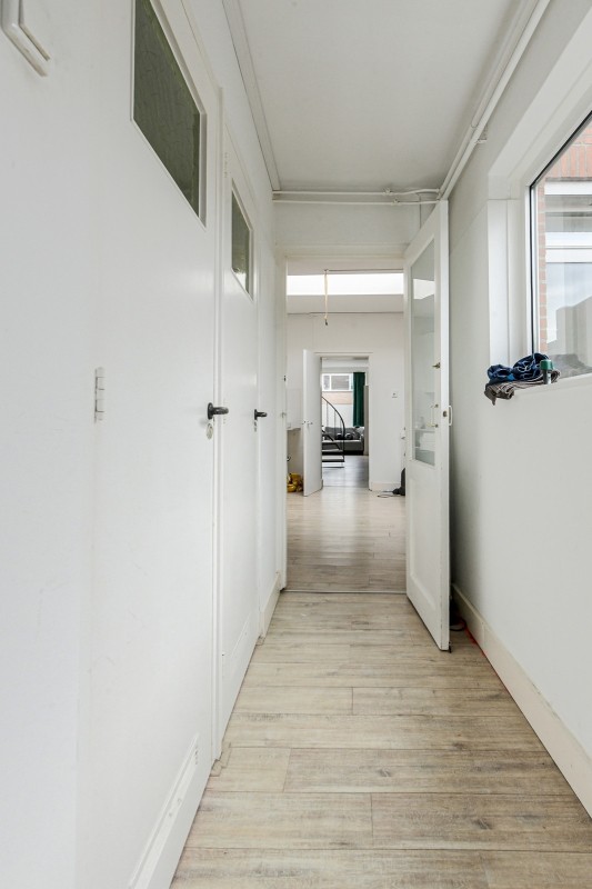 Overloop met laminaatvloer en toegang tot 3 slaapkamers