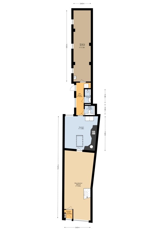 Zeer riante, vanuit de woning te bereiken bergruimte van circa 24 m² welke is voorzien van electra en opstelplaats cv ketel.