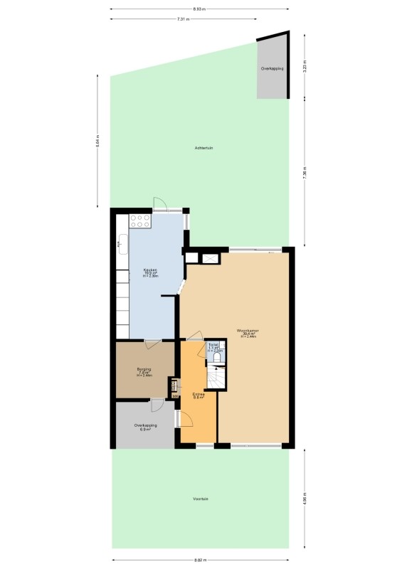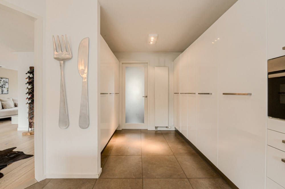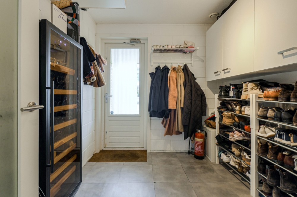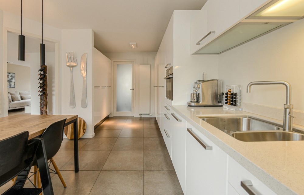 Vanuit de keuken zijn zowel de tuin als de inpandige berging bereikbaar.