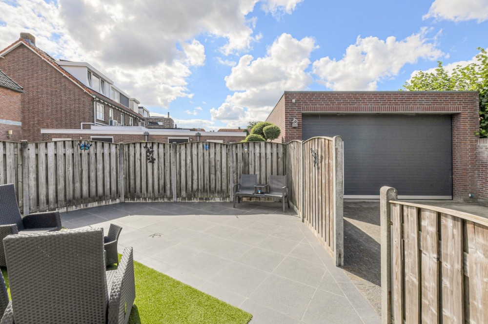 De tuin is gelegen op het zuidwesten en biedt volop ruimte voor meerdere terrassen en een eigen indeling. De tuin is open van karakter; voor wie meer beschutting wenst zijn er diverse mogelijkheden om extra privacy te creëren, bijvoorbeeld met groen, erfafscheidingen of pergola’s. Hierdoor is de buitenruimte geheel naar eigen voorkeur vorm te geven.