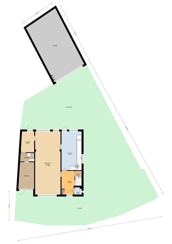 * Separate vrijstaande loods/garage afmeting circa 53 m2 in spouw gebouwd met elektrisch bedienbare roldeur;