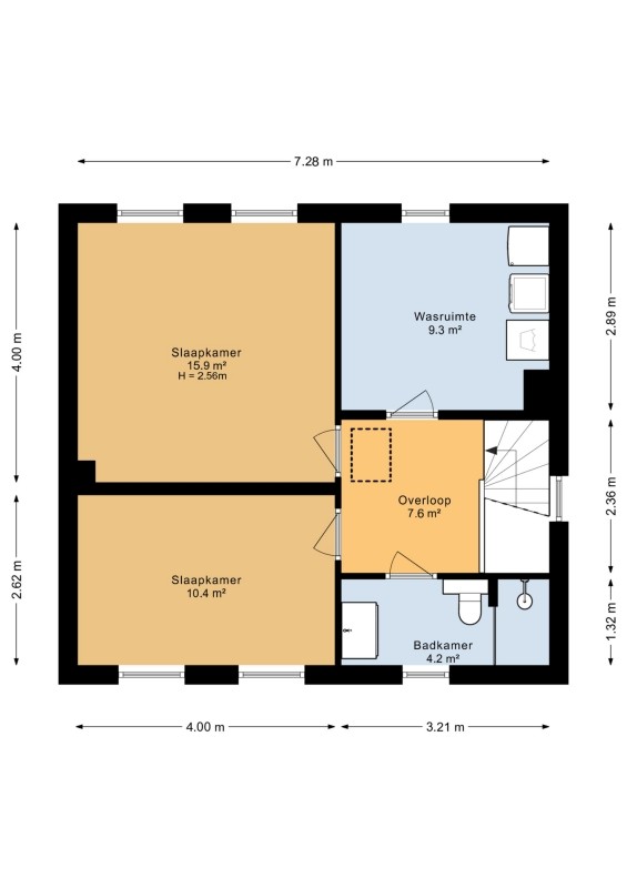 Op deze verdieping bevinden zich meerdere slaapkamers van goed formaat. Deze kamers zijn flexibel in te delen en daardoor niet alleen geschikt als slaapkamer, maar ook als werk-, hobby- of logeerkamer. De badkamer is functioneel en biedt mogelijkheden voor modernisering naar hedendaagse woonwensen.